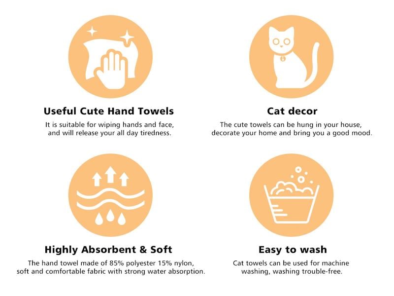 [Söt Kattdesign]  Dessa handdukar har roliga kattmotiv och tryckknappar som förhindrar att de glider. De Àr mjuka att ta pÄ, vilket ger dig en tröstande kÀnsla som att röra vid en katts mage! Katthanddukarna Àr oemotstÄndligt söta och fÄr dig att vilja krama dem!