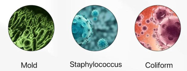 Det dödar 99,9 % av bakterierna, eliminerar effektivt källorna till hushållspatogener (E. coli, Staphylococcus aureus, etc.), gör mikroorganismerna oförmögna att föröka sig och hämmar därmed bakterietillväxt.