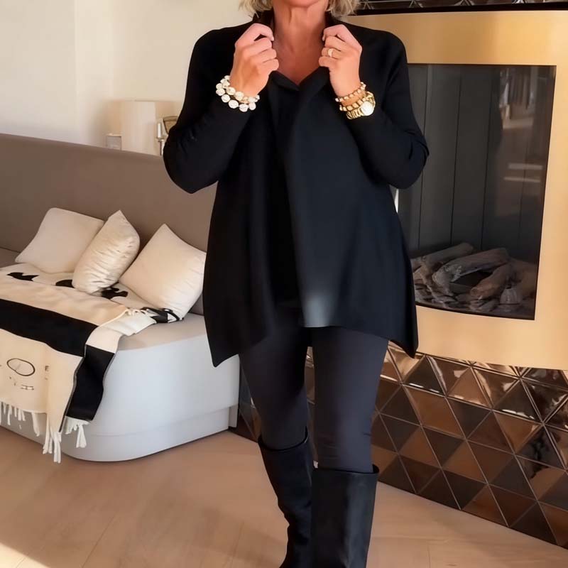 MODERN SLAGKRAGE – Denna avslappnade damtopp har en stilren krage med slag som ger en polerad men avslappnad känsla. Den passar lika bra på dagen som på kvällen. Slagdetaljen lyfter hela stilen och gör toppen lämplig för både professionella och vardagliga tillfällen. De långa ärmarna ger bra täckning samtidigt som tyget andas, vilket gör den bekväm och användbar under flera säsonger utan att begränsa rörelsefriheten.